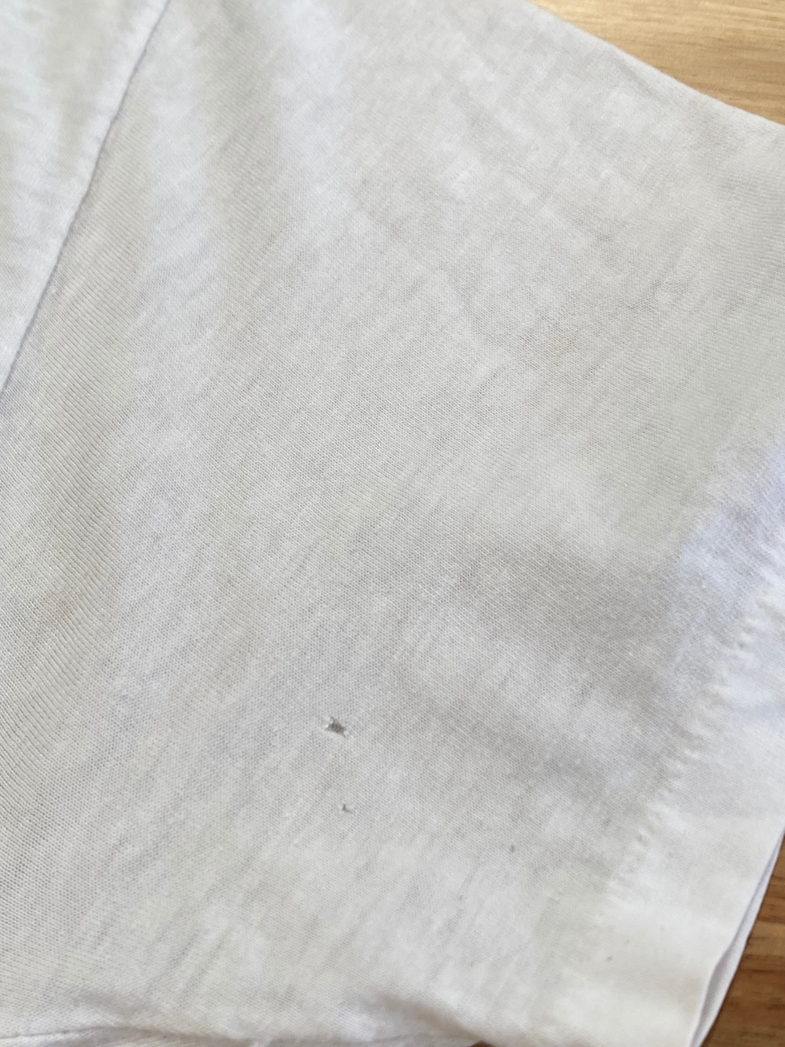 袖に小さなピンホール、フロントにごくうっすらとシミがございますが着用に問題のあるダメージではございません
